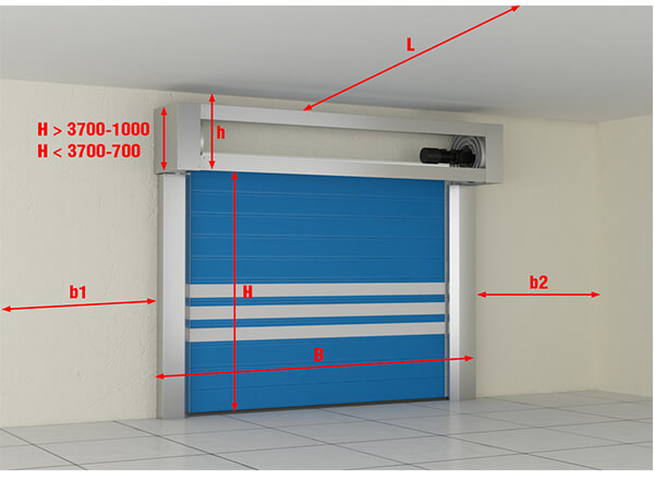 | h | Headroom (top of opening to ceiling) | Reserve ≥900mm, take the minimum value |